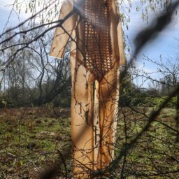 The work consists of a biomaterial bodysuit embedded with sensors and connected to a responsive display. Through touch, the display is activated, revealing a series of images derived from a self-applied body mapping process.